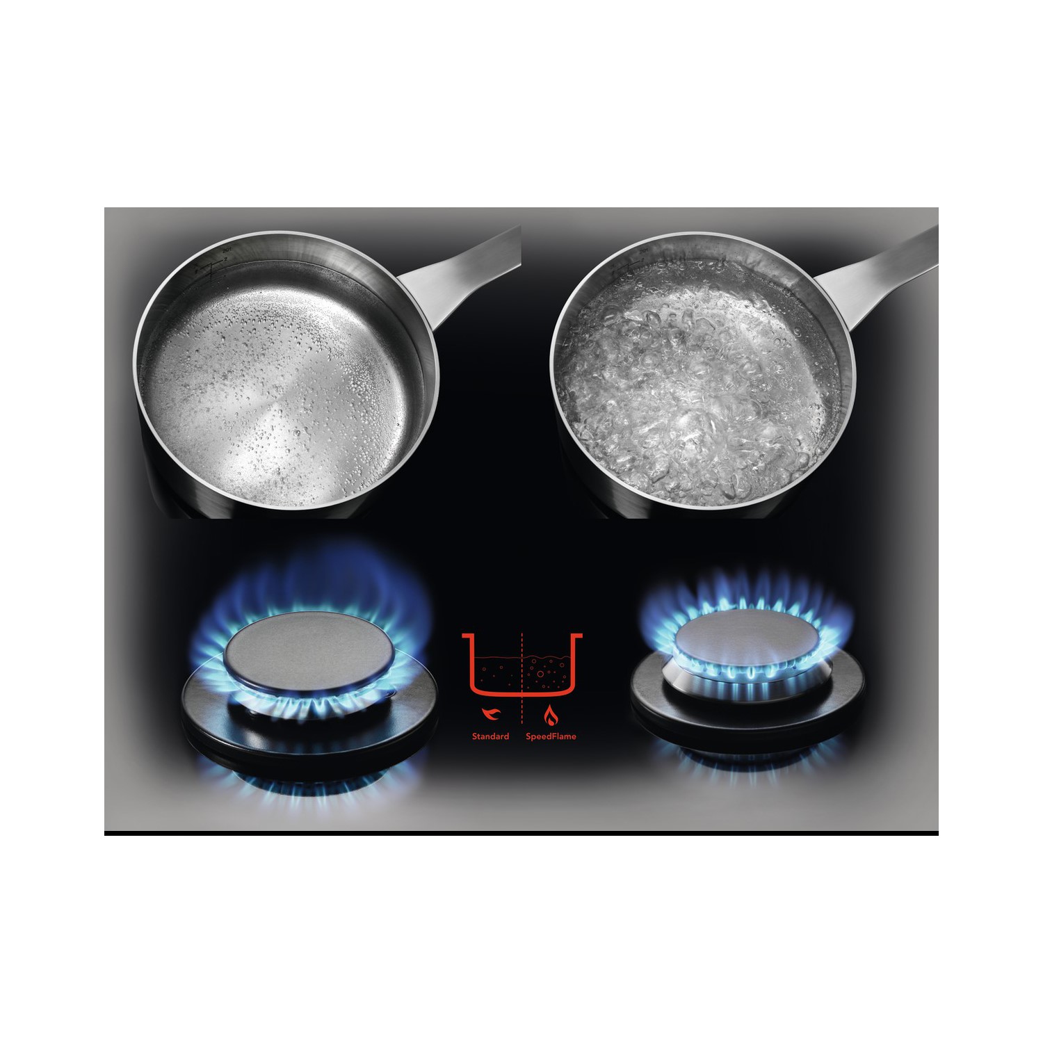 A Speed Burner gas hob is 20% faster, helping you apply the right heat for flawless taste. The burners allow you to regulate speed, so your wok or pasta always gets exactly the heat it needs. No more. No less.