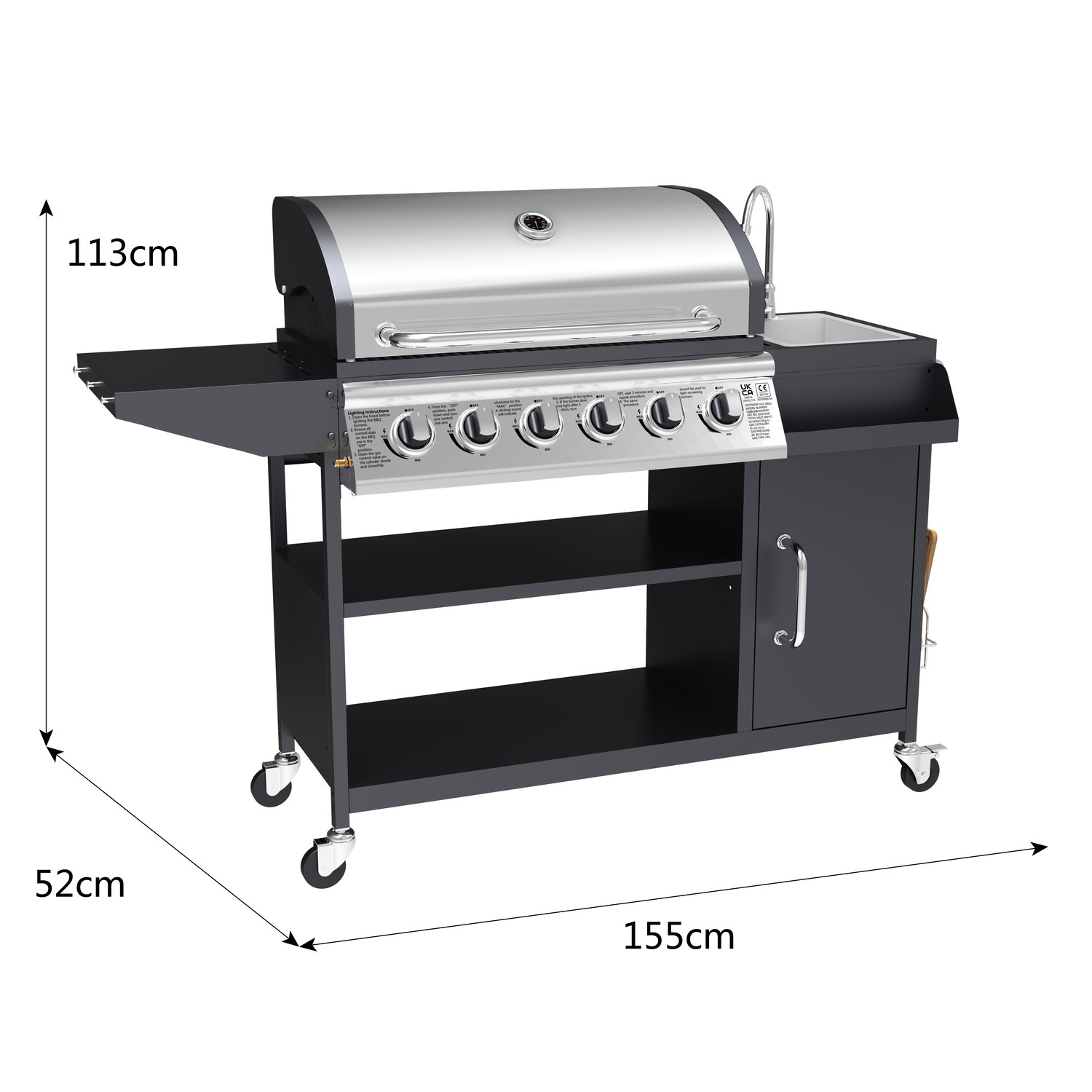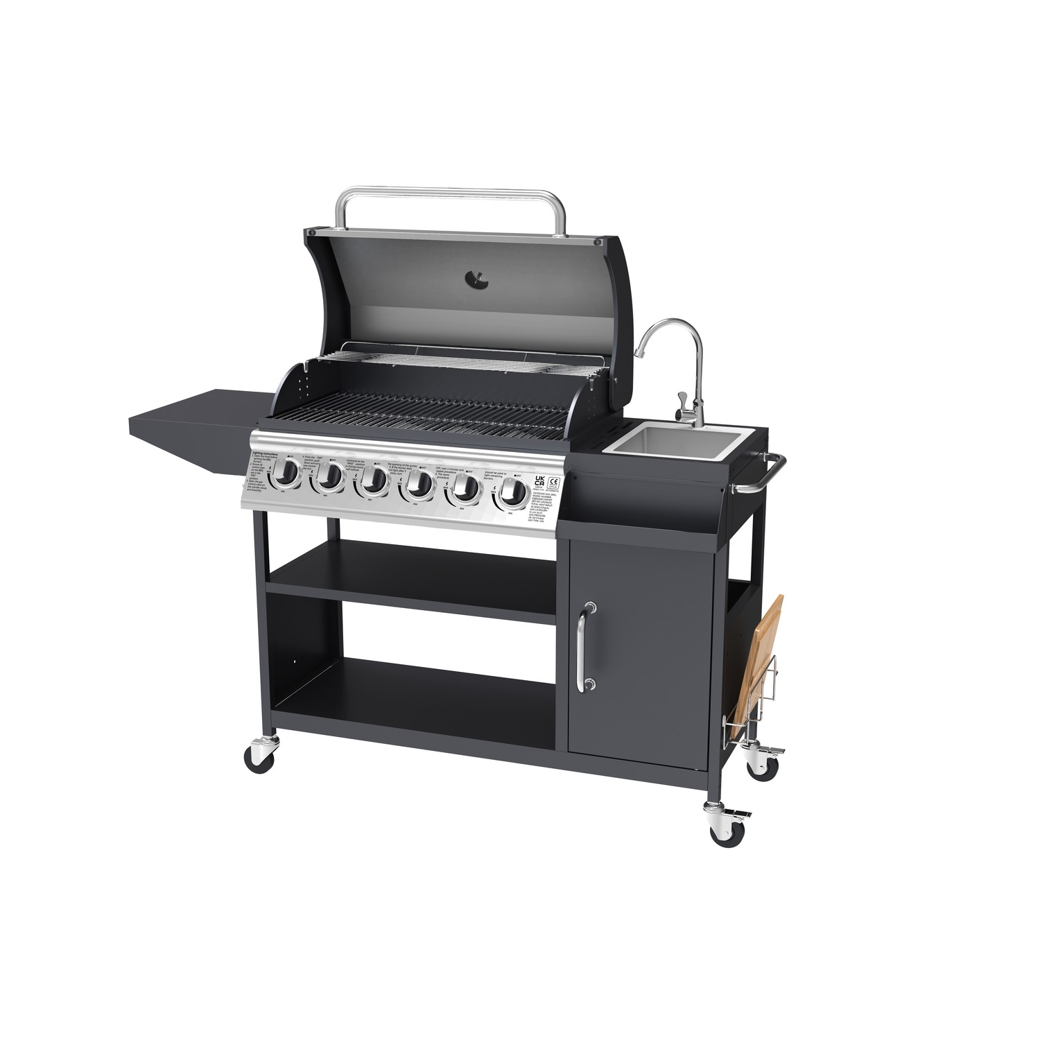 - 6 Burner gas BBQ, with a generous cooking area and a warming rack