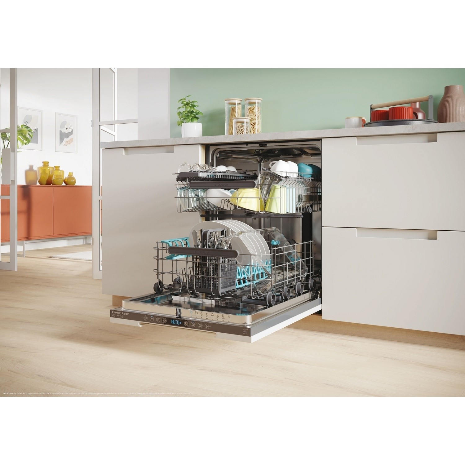 Make washing up simple with the Candy Rapidò integrated dishwasher. It’s designed for busy homes, fitting a huge 15 place settings – perfect for family meals or when friends visit. This means fewer loads and more free time for you. Plus, with Smart Wi-Fi, you can control and check your wash from your phone, making life even easier.