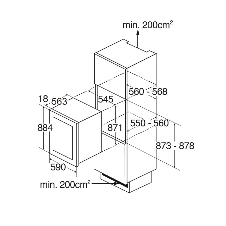 The FWV902 is an integrated, dual zone wine cooler. Capable of holding up to 55 bottles, with LED lighting and triple UV protected smoked glass door, it will ensure your wine is kept in optimal conditions. It comes complete with 5 wooden slide out shelves, an electronic temperature control with a memory function and alarm, and a display shelf to showcase your favourite wines.