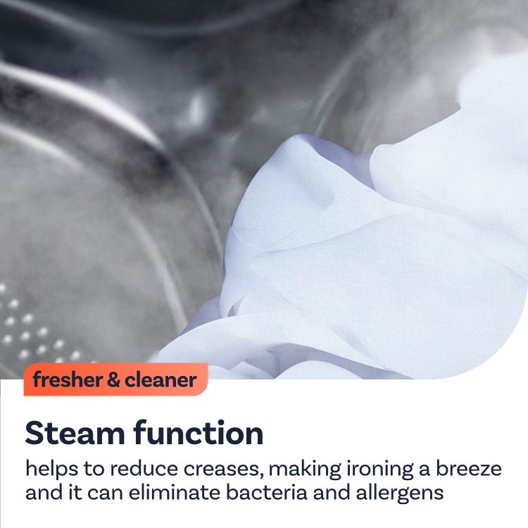 - Steam Function: Reduces wrinkles and refreshes clothes without rewashing