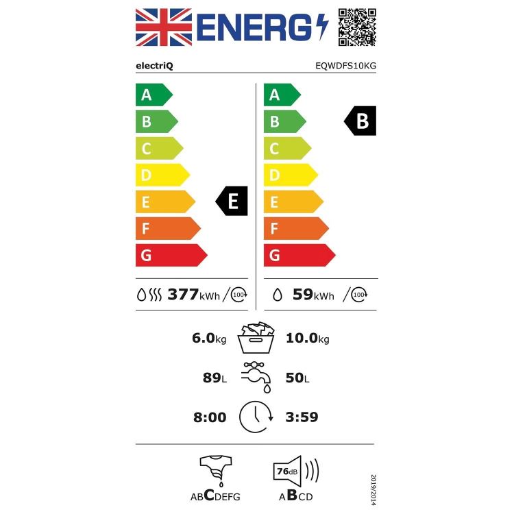 electriQ 10kg Wash 6kg Dry 1400rpm Washer Dryer – White