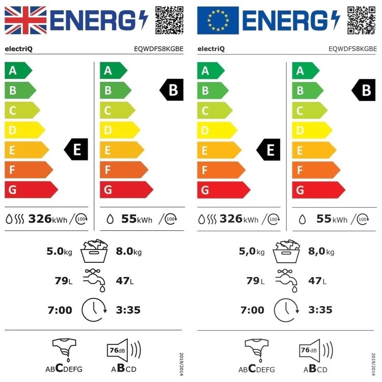 electriQ 8kg Wash 5kg Dry 1400rpm Washer Dryer – White