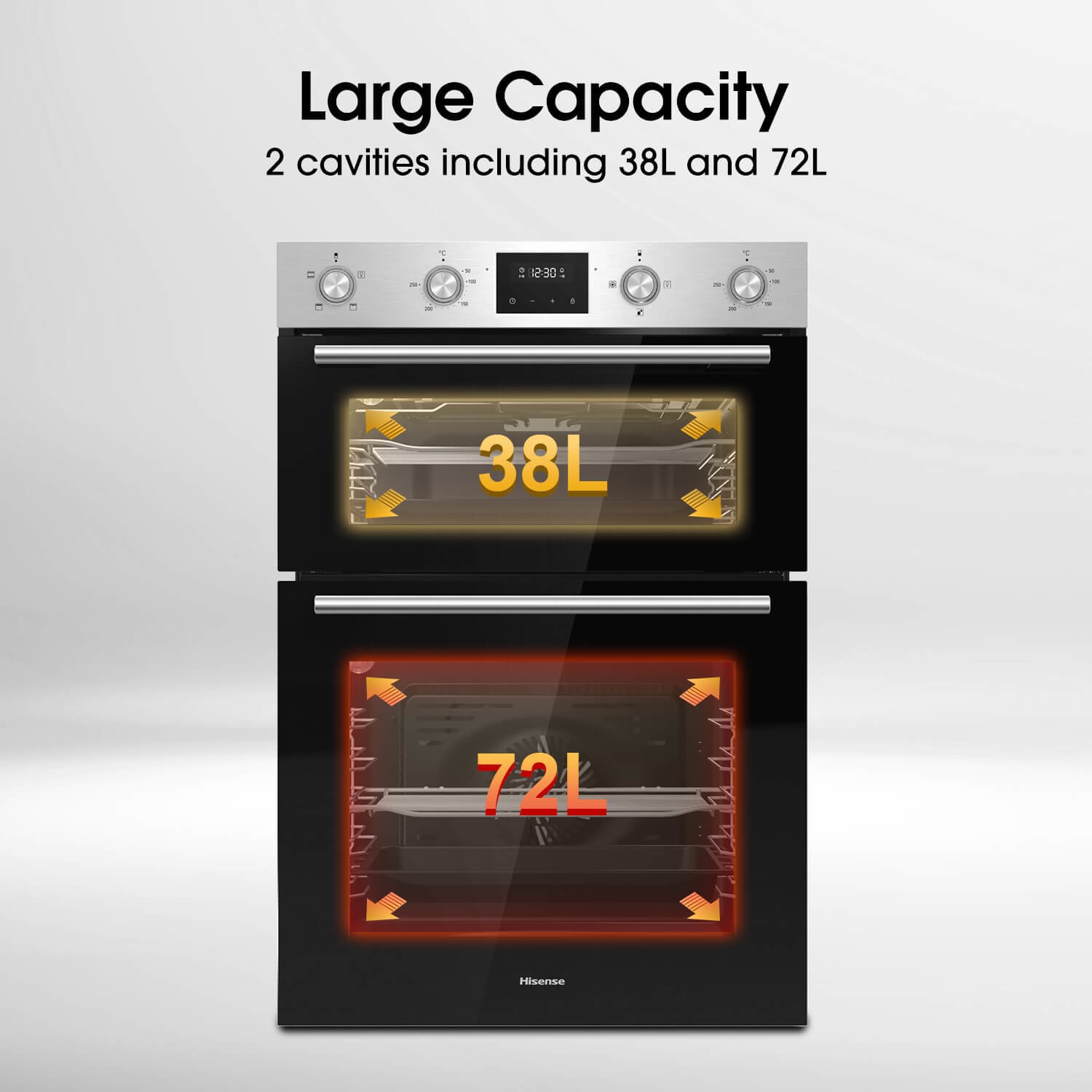 Designed to give you the maximum oven volume across two cavities. The main oven cavity comes with a 72 litre capacity and is supported by a 38 litre second cavity. The large capacity makes it easier to prepare more food at the same time.