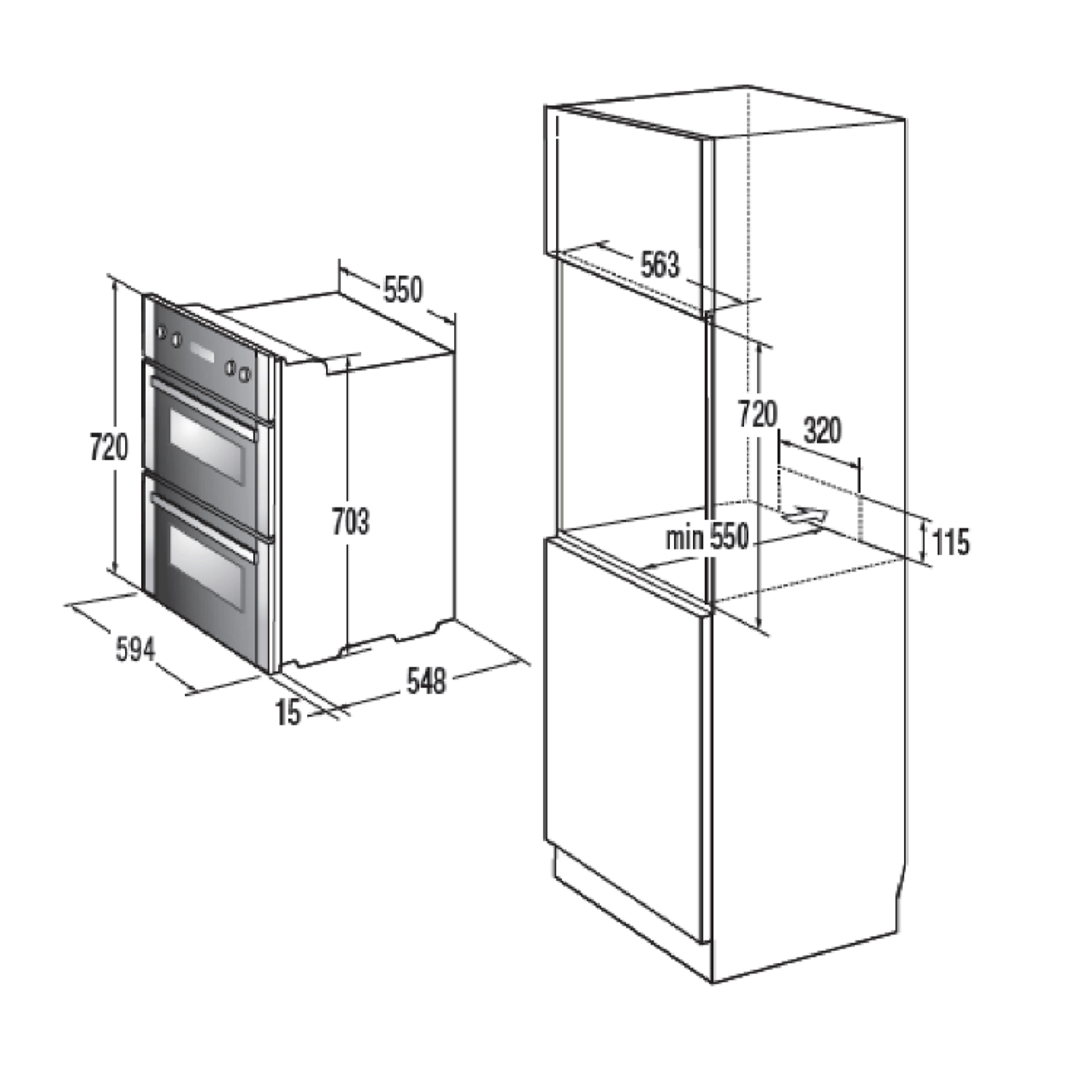 - Dimensions (mm): H715 x W595 x D550