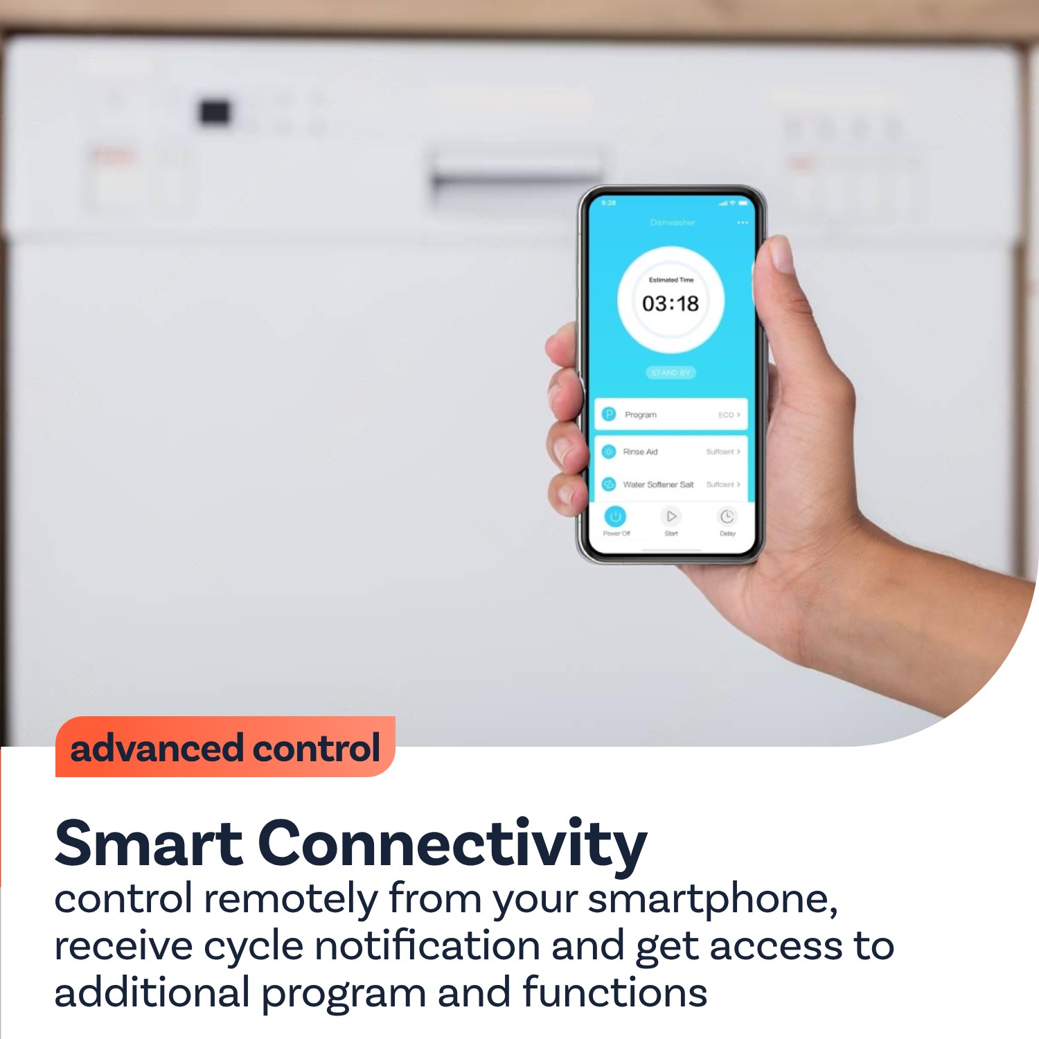 The Hoover H-Dish 700 full-size dishwasher is designed to make daily clean-up simple. With space for 16 place settings, it easily handles dishes from big family meals or when you have guests. You can even control it from your smartphone using Wi-Fi, letting you start a wash or check progress from anywhere. Its Power Wash system tackles tough food, while the automatic door opening helps dishes dry naturally, saving you time and effort.