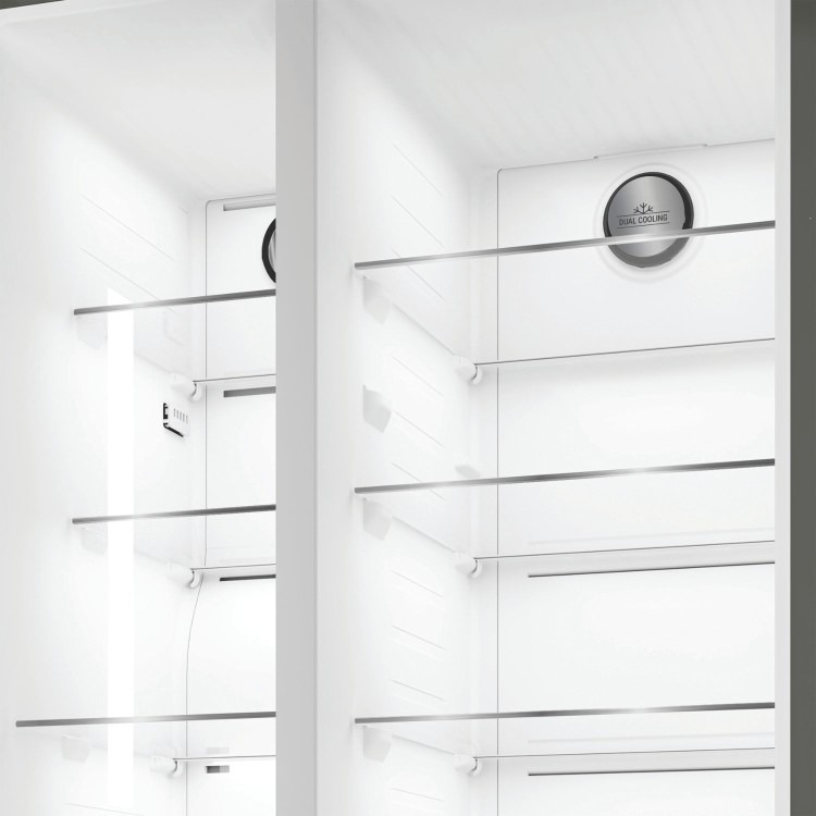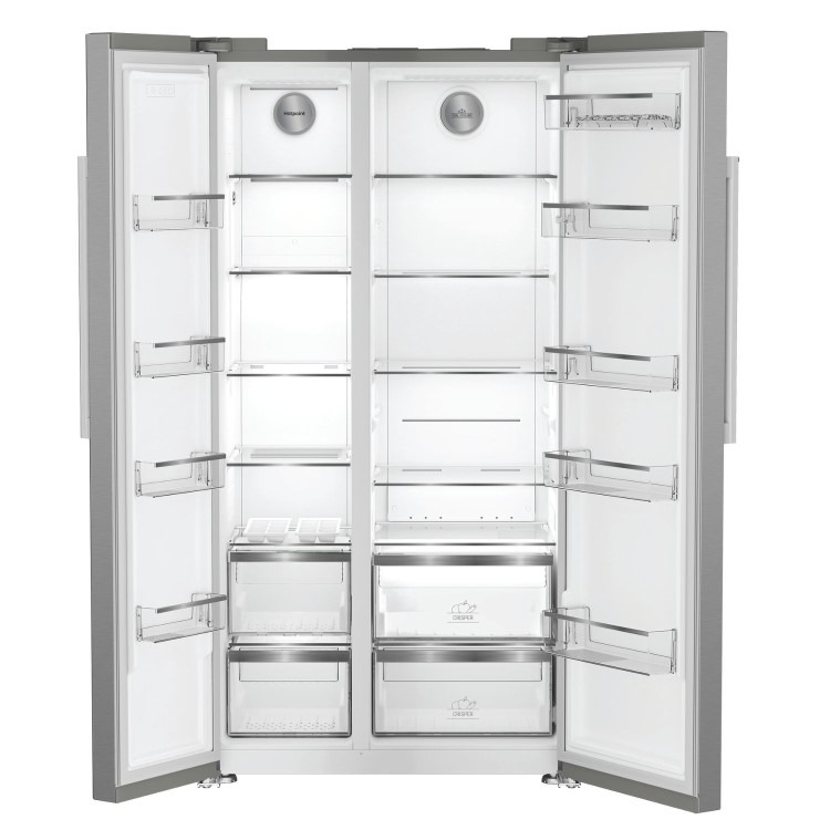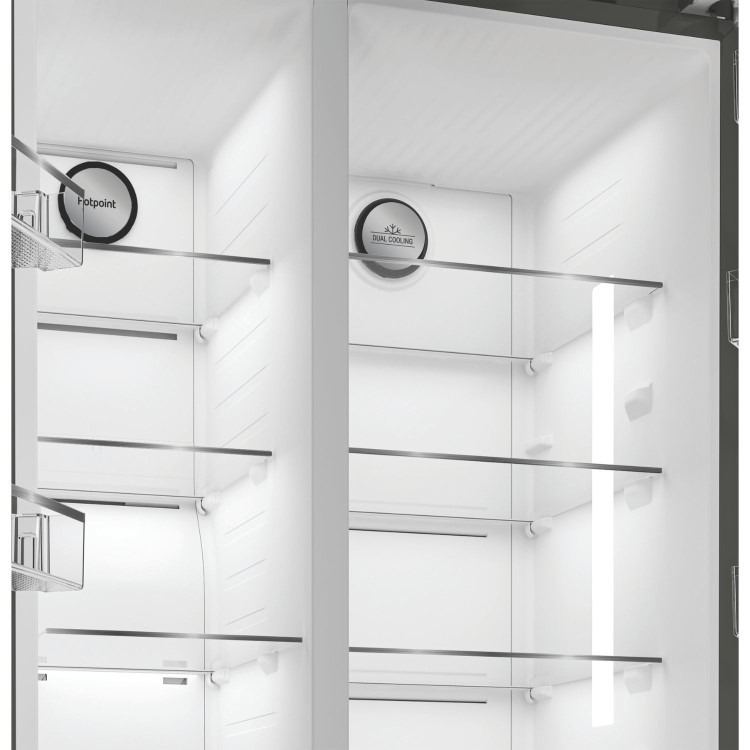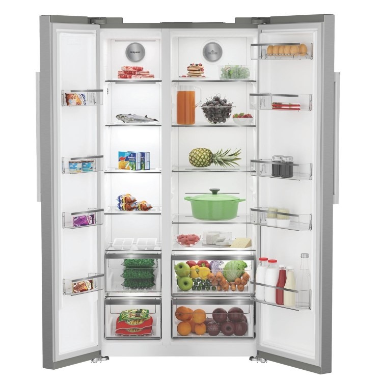 This Hotpoint American fridge freezer in stylish silver features thoughtful technology that keeps your food fresh and prevents waste. With an extra-large capacity of 593L, it provides ample space for 33 shopping bags, so you can easily fit all your groceries in and the touch display allows you to refrigerate your food with precision by controlling your appliance at the touch of your fingertips.