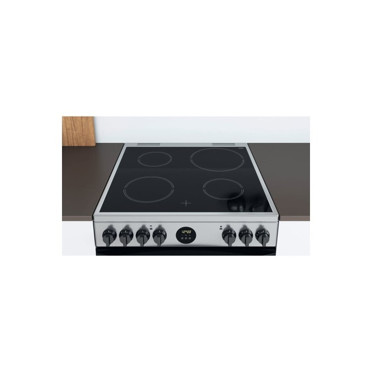 Cooking and cleaning are easier than ever with Indesit’s new freestanding ID67V9HCX electric ceramic cooker. With a generous 77-litre capacity main fan oven and 49L capacity conventional oven and grill, you’ll have ample room to cook all your family meals, so dinner time is a breeze. Within the oven, the self-cleaning catalytic liners naturally remove fat and grease during the cooking process taking the effort out of cleaning. Cleaning your door has never been so easy with one simple ‘click’, the Click&Clean inner glass door is removed effortlessly so you can keep your door sparkling. For total convenience, the Anti-Stick tray is cleverly designed to prevent sticking, keeping it super simple to clean and slots neatly into the oven as an extra shelf for added flexibility.