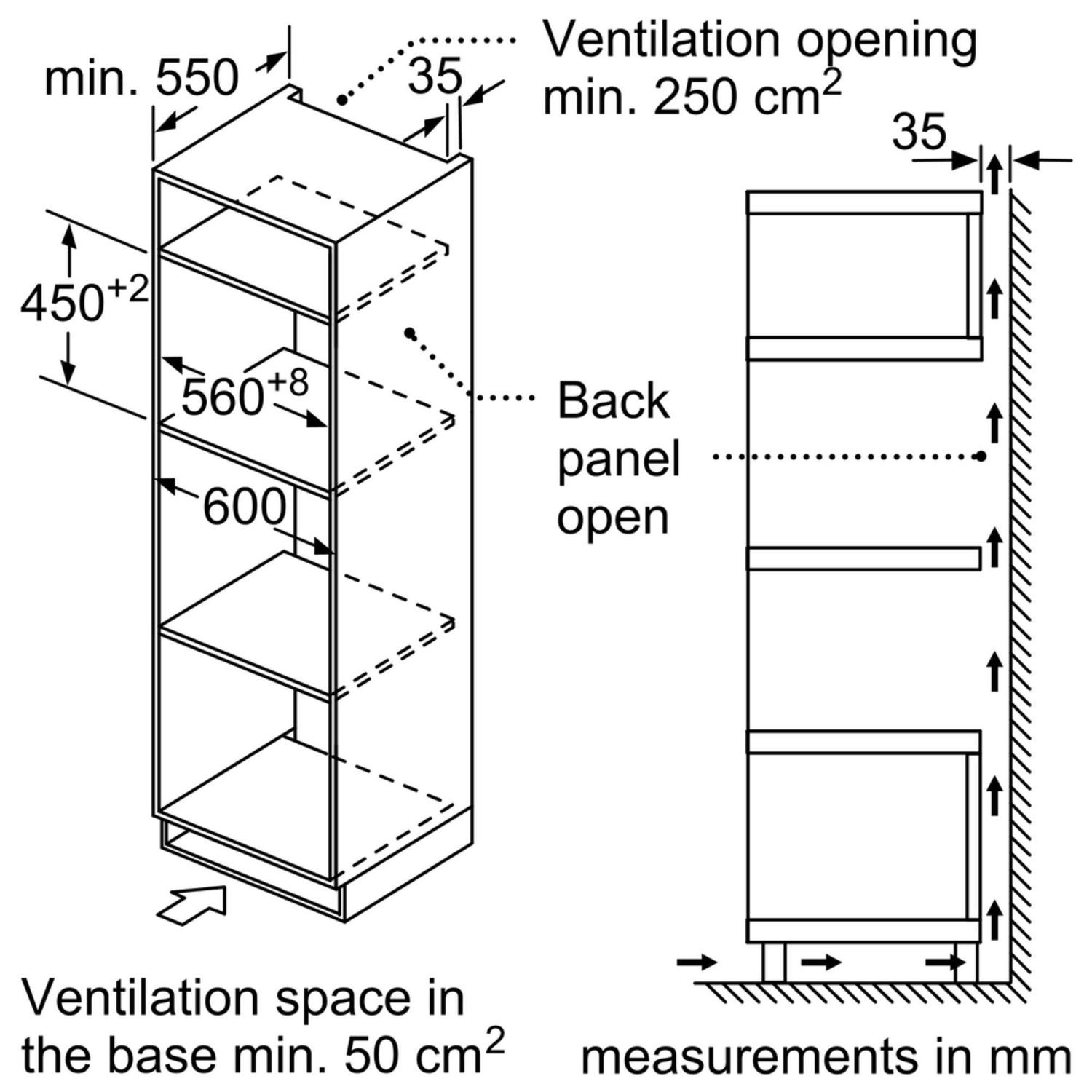 • Niche dimension (hxwxd): 450 mm – 458 mm x 560 mm – 568 mm x 550 mm
