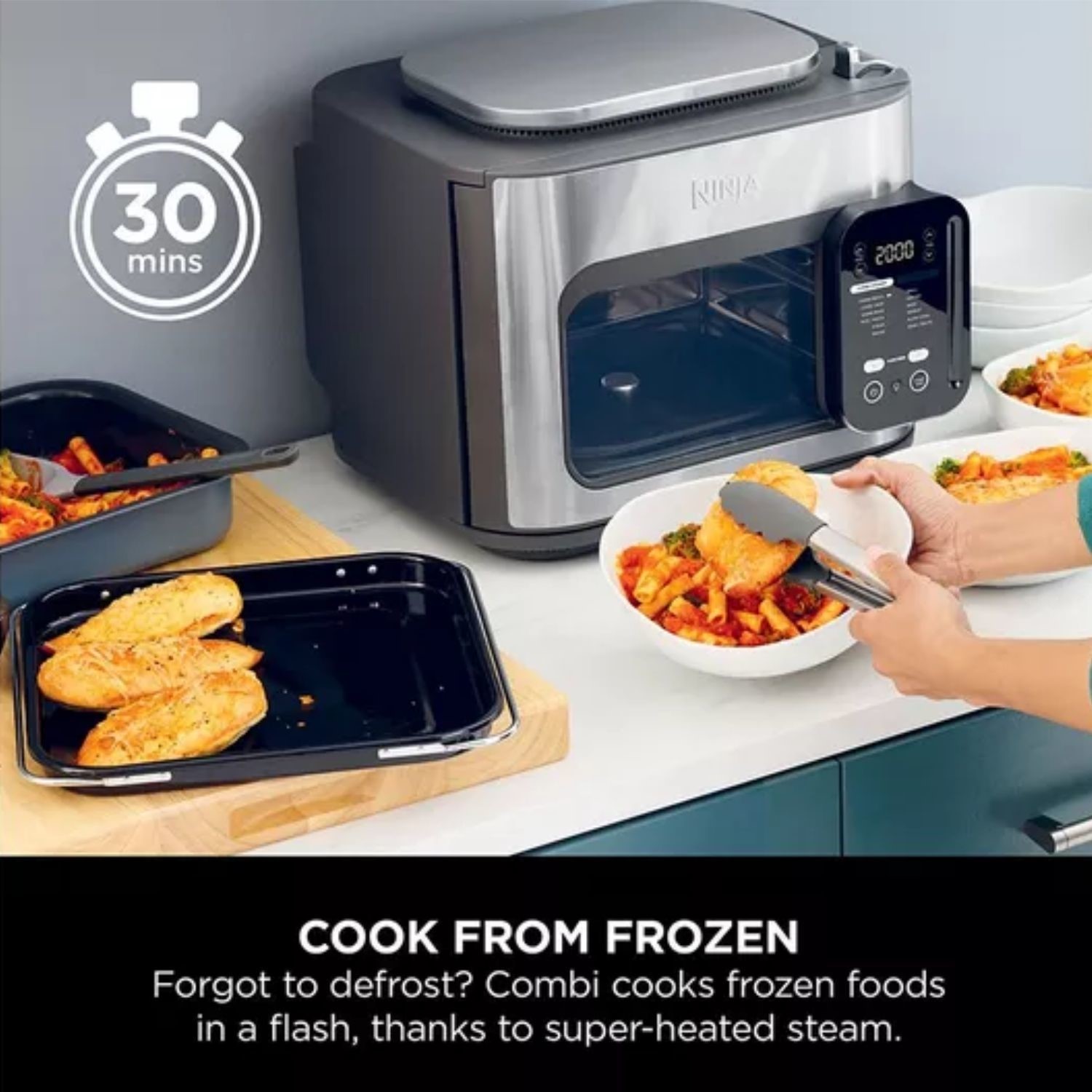 Keeping a hungry family happy is no easy task. This Ninja Combi multi-cooker’s HyperSteam and Air Frying technologies let you whip up family-size feasts in just 15 minutes. It cooks up to 50% faster than a conventional oven which means no hangry household getting on your back. With 12 versatile cooking functions you won’t be left scratching your head at dinner time. Go from baking creamy mac and cheese to air frying homemade potato wedges at the push of button. And you can cook from frozen so there’s no need to panic if you forgot to get the steaks out of the freezer.