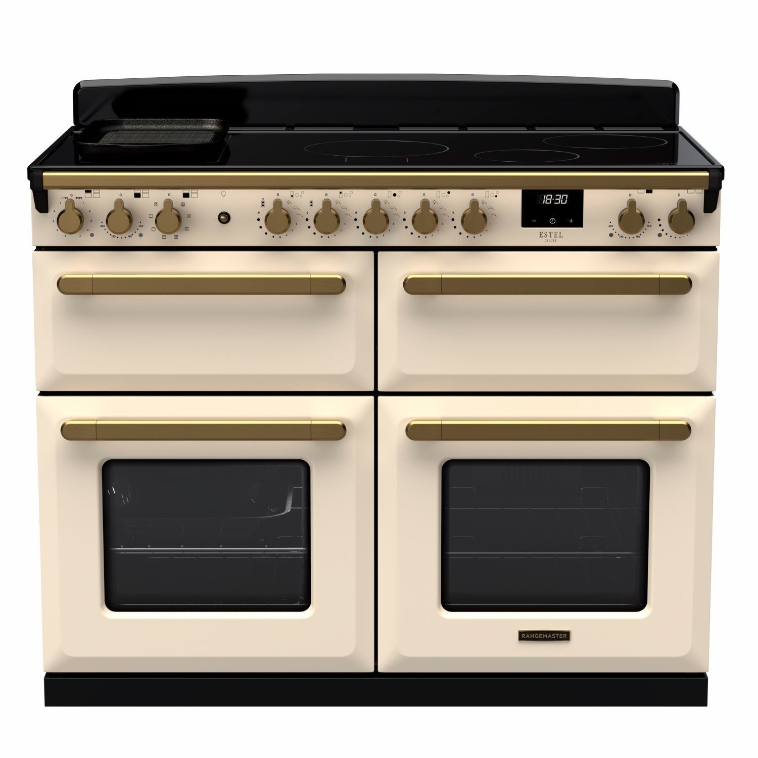 Rangemaster Estel Deluxe 110cm Induction Range Cooker – Pale Cream + Brass