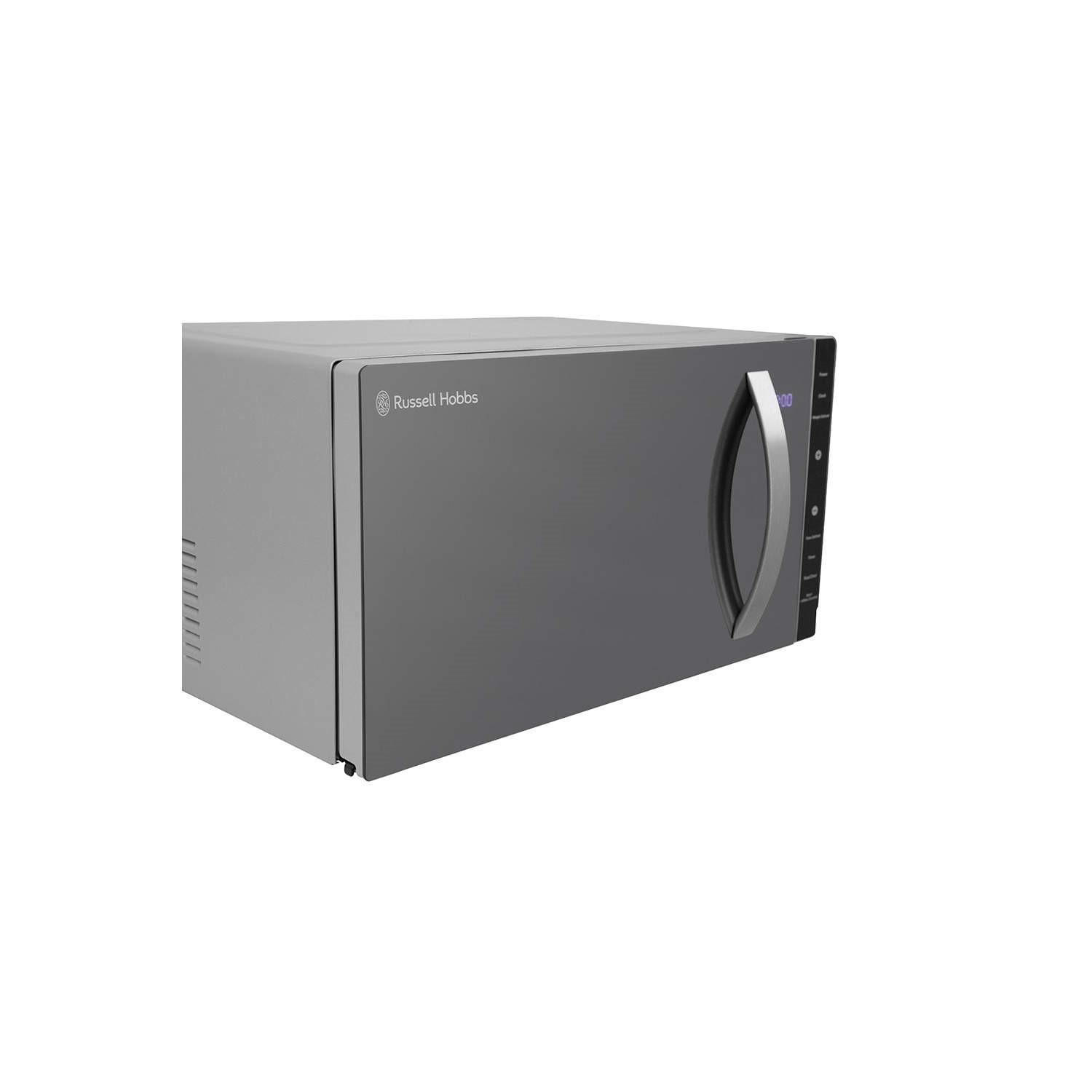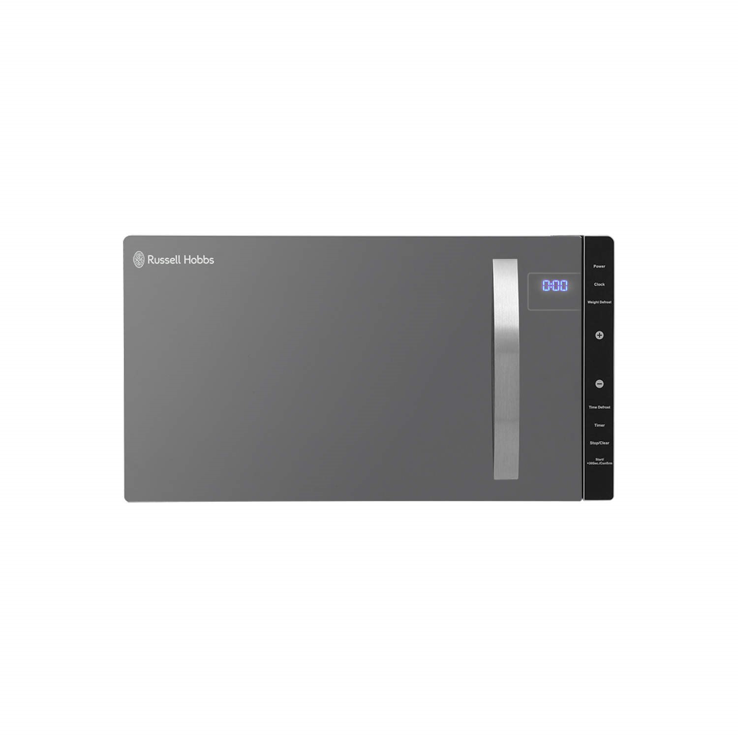 The Russell Hobbs silver microwave is modern and has a stylish mirror door. This 23 Litre microwave is 800W, has 5 microwave power levels, including defrost and features a 95 minute timer with a large dial display. We believe the kitchen is the heart of the home so this microwave features a removable glass turn table for easy cleaning and simple, functional manual control dials.