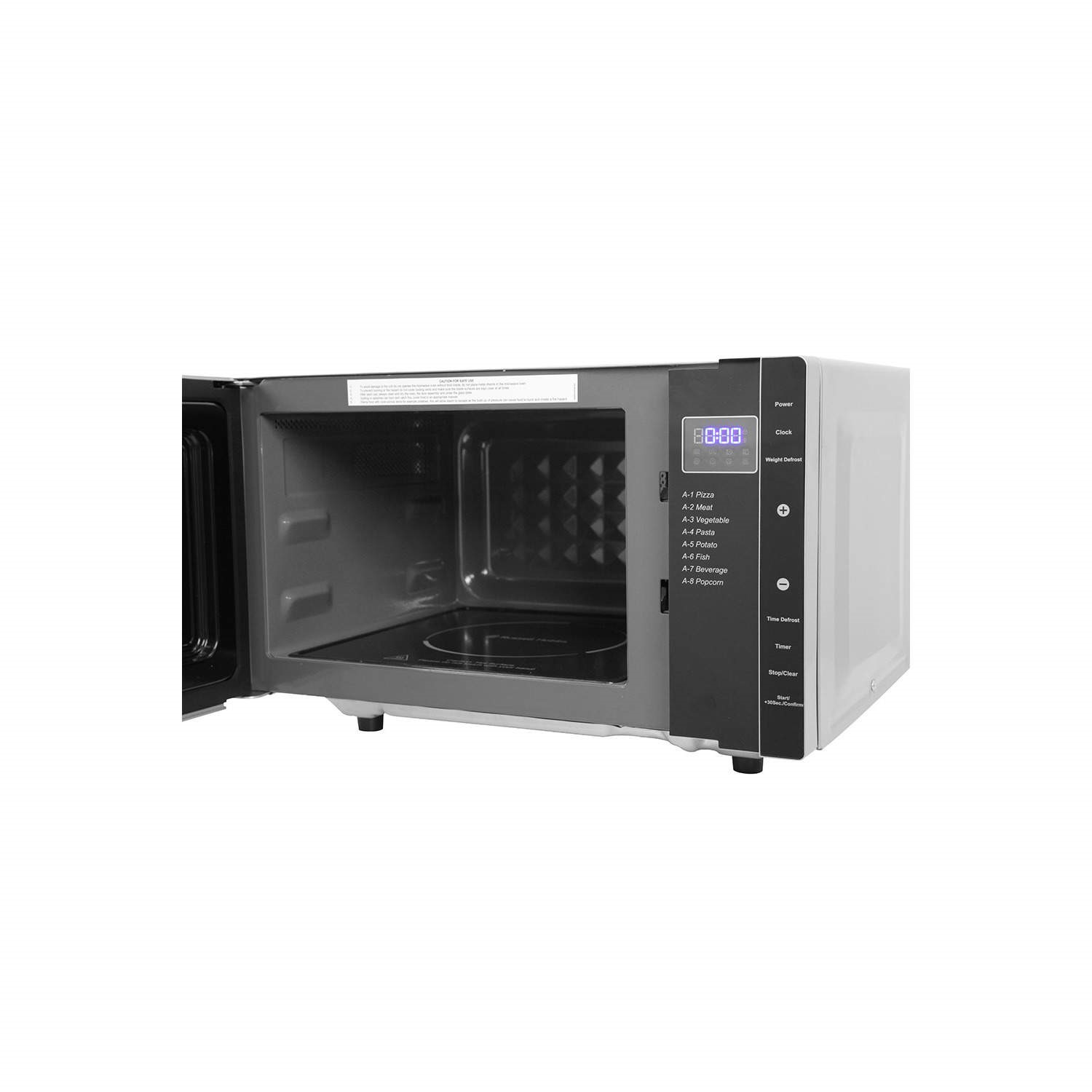 - Flatbed technology – no turntable means extra space for larger plates and dishes